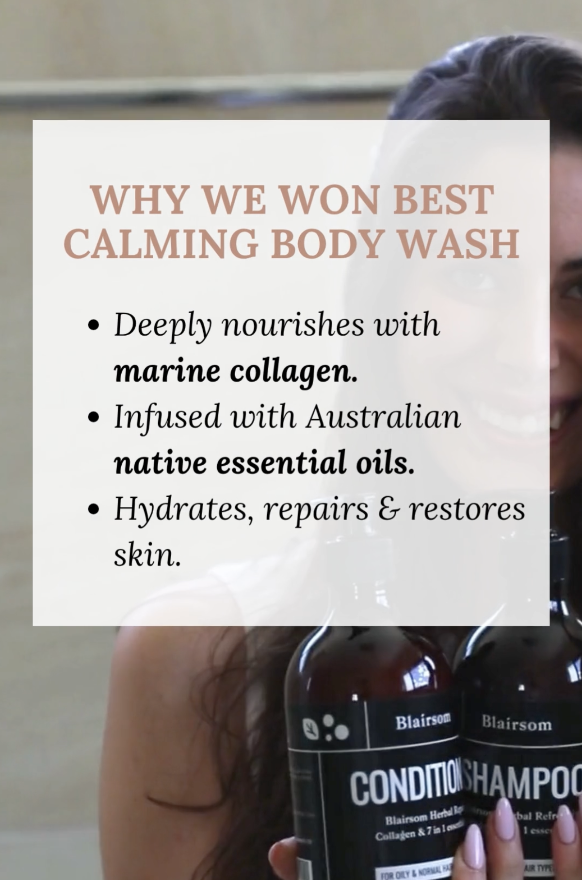 Blairsom broke new ground as Australia's first to fuse Type 1 Marine Collagen with six potent native essential oils in a shampoo—delivering deep cleansing, strength, and scalp relief without harsh chemicals. This innovative formula set a new standard for natural hair care, earning top recognition from Top Marketing for its fresh approach and real results that transform oily to normal hair.